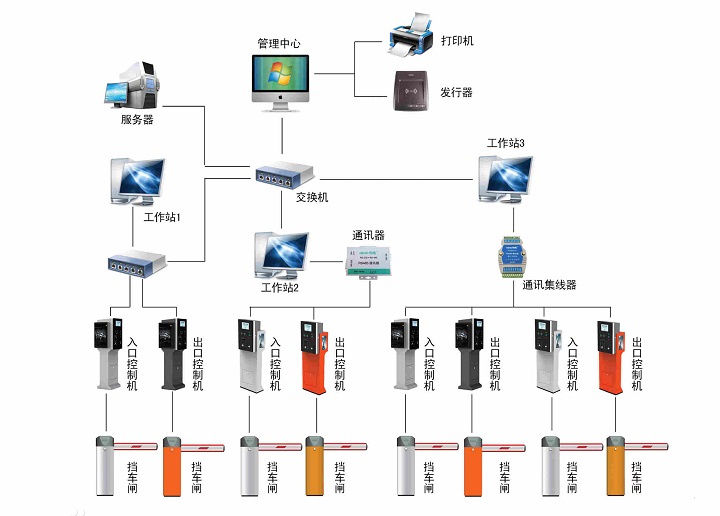 停车场管理系统是通过计算机、网络设备、车道管理设备搭建的一套对停车场车辆出入、场内车流引导、收取停车费进行管理的网络系统。是专业车场管理公司必备的工具。它通过采集记录车辆出入记录、场内位置,实现车辆出入和场内车辆的动态和静态的综合管理。系统一般以射频感应卡为载体,通过感应卡记录车辆进出信息,通过管理软件完成收费策略实现,收费账务管理,车道设备控制等功能。
